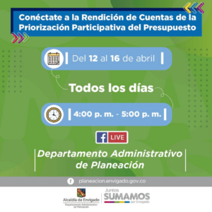 Este año a causa de la situación de salud, por cual atraviesa nuestro país, la Rendición se realizará de manera virtual por medio de la cuenta oficial de Facebook del Departamento Administrativo de Planeación.