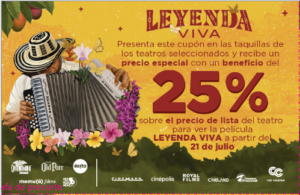 En el marco de Compra Colombiano, el 21 de julio se estrena en cines a nivel nacional «Leyenda Viva, el alma de un pueblo», la película que, de la mano de muchos de los más importantes compositores y hacedores de este género, lleva por un recorrido, desde el origen hasta nuestros tiempos, de uno de los ritmos más tradicionales del país, el Vallenato, declarado patrimonio inmaterial de la humanidad por la Unesco.