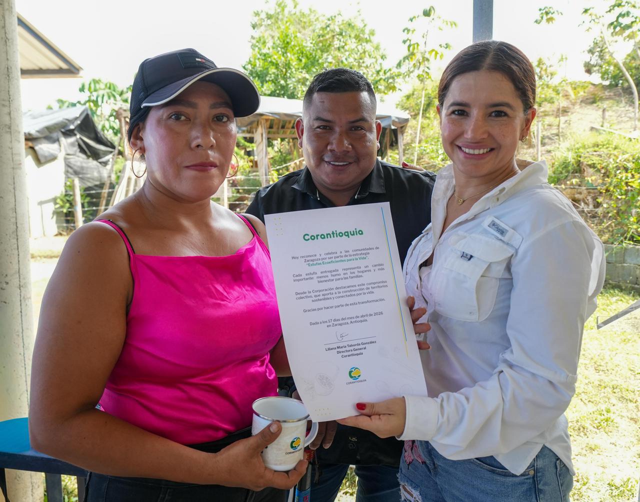 Su primera entrega se desarrolló en las veredas La Porquera y Quebradona del municipio de Zaragoza, Antioquia, donde 120 familias de comunidades afrocolombianas e indígenas se verán beneficiadas al recibir estufas que promueven prácticas de cocina más seguras, saludables y sostenibles.
