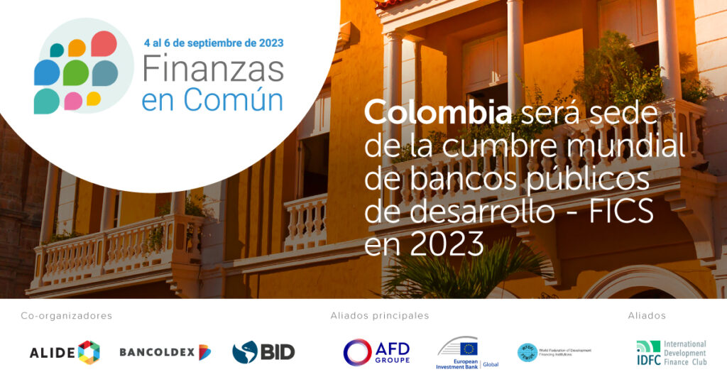 “Nuevo Pacto Global de Financiamiento” se sumarán y tendrán seguimiento en la Cumbre Mundial de Bancos Públicos de Desarrollo (FiCS 2023), que se celebrará por primera vez en Latinoamérica, del 4 al 6 de septiembre en Cartagena, Colombia, y consolidará las nuevas alianzas e innovaciones para la próxima generación de financiamiento para el desarrollo.