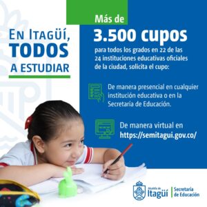 Con una oferta disponible de más de 3.500 cupos para todos los grados en 22 de las 24 instituciones educativas oficiales del municipio de Itagüí, la Secretaría de Educación abrió inscripciones para el proceso de matrículas 2021.