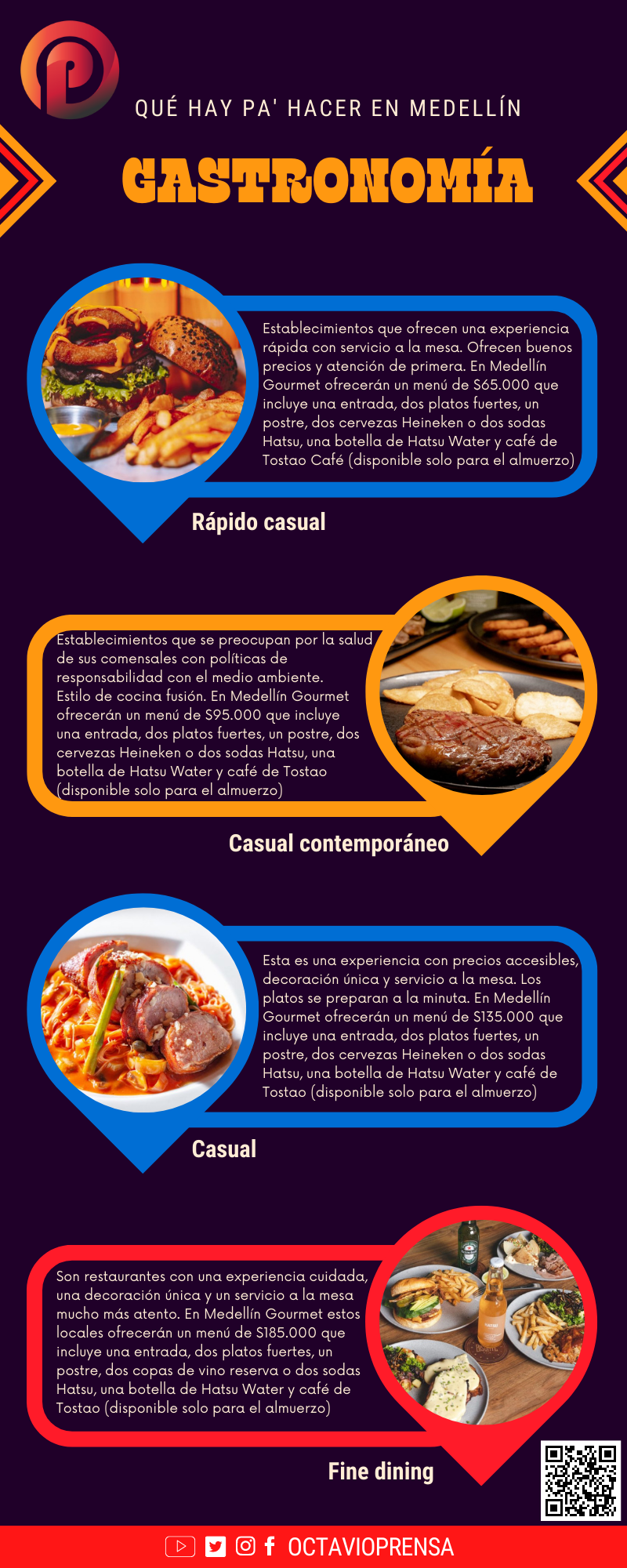 Para esta edición, hay cuatro categorías para que los comensales disfruten. En la infografía anexamos un código QR para que lo puedas descargar y tener a la mano los restaurantes participantes: